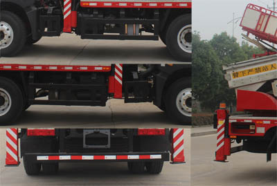 該車用途為搶修電力、通訊、路燈等高空作業.主要裝置為升降平臺,作業臂.該車前伸400mm,側、后防護材料Q235B,均與車架焊接連接;后部防護斷面尺寸(寬×高)(mm):50×100,后下部防護離地高度為480mm.ABS系統生產廠家,型號 :焦作博瑞克控制技術有限公司,J