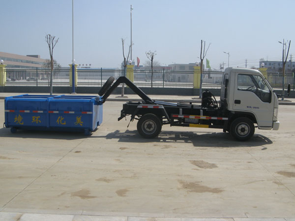 該車結(jié)構(gòu)簡單,操作穩(wěn)定方便,裝卸效率高,機(jī)械化程度高,節(jié)省人力。一車可帶多個(gè)大廂,在裝卸的運(yùn)輸過程中可有效地避免二次污染。