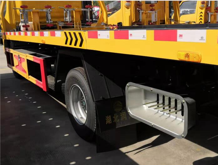 根據(jù)清障車中的吊臂、托臂特有的功能,清障車又可分為吊臂旋轉(zhuǎn)型、吊臂滑動型、托臂折疊(負(fù)載)型等。帶有輔助轉(zhuǎn)向的清障車,主要用在隧道、橋梁等場地有限制的場合進(jìn)行作業(yè)。